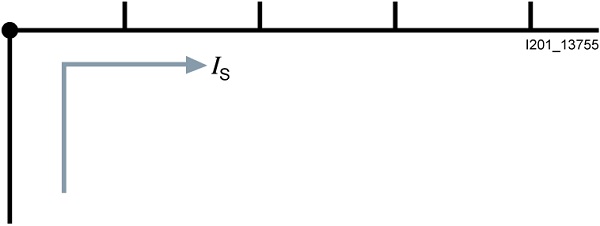 - przy zasilaniu szyny, podłączonym po jednej z zewnętrznych stron, maksymalna obciążalność prądowa (I_s – maksymalny prąd szyn na fazę) jest zgodna z wartościami znamionowymi wskazanymi powyżej (I_s=I_n)