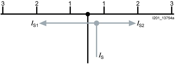- zasilając szynę na środku, możemy zwiększyć maksymalną obciążalność prądową szyny nawet do 130 A (zakładając oczywiście, że sumy prądów odpływowych I_s1, I_s2 nie mogą być większe niż prąd znamionowy szyny o danym przekroju):