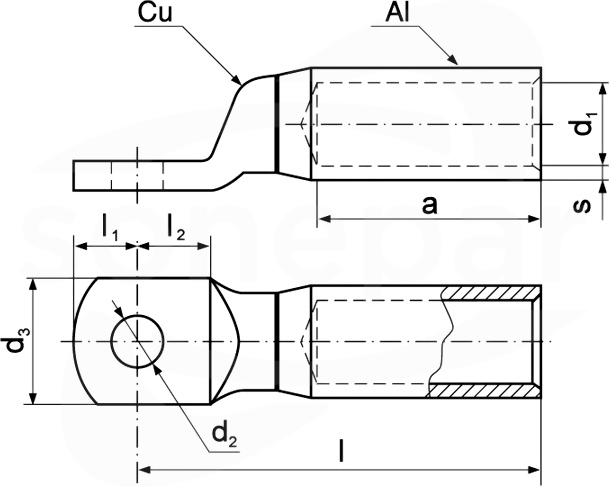 Końcówka szczelna ACK do kabli Al jedno- i wielodrutowych - przekrój żyły 400 mm2 rm/sm, pod śrubę M 12