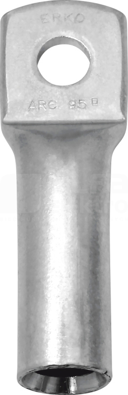 Końcówka rurowa ARC do kabli Al jedno- i wielodrutowych - przekrój żyły 95mm2 rm/sm, pod śrubę M 12, opakowanie 10 szt. Dane techniczne: Producent: ERKO Seria produktu: ARC Indeks producenta: ARC_12-95/1 Kategoria: Końcówki i złączki kablowe EAN: 5905912846102 Wyróżnik matryc zaciskowych: 18 Materiał: aluminium Narzędzie do zaciskania: PR95A, EPZC300N, EPZ300N, GZ300, HRZ300, PRZ240, GU300 Waga g/szt. - 26,60