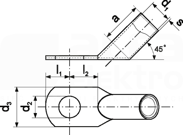 ERKO Końcówka oczkowa Cu rurowa KCS 45 10-150 1 szt. Przekrój żyły : 150 mm2 Pod śrubę M10 Dane techniczne: Producent: ERKO Seria produktu: KCS45 Indeks producenta: KCS45_10-150/1 Kategoria: Końcówki rurowe miedziane EAN: 5905912830408 Liczba sztuk w opakowaniu: 1 szt. Kształt końcówki: Oczkowe Kąt połączenia: 45° Rodzaj przewodu: Wielożyłowy powłoka: cyna materiał: miedź elektrolityczna (zgodna z EN13600) minimalna warstwa pocynowania: 3μm tolerancja wymiarowa wg. DIN 46235